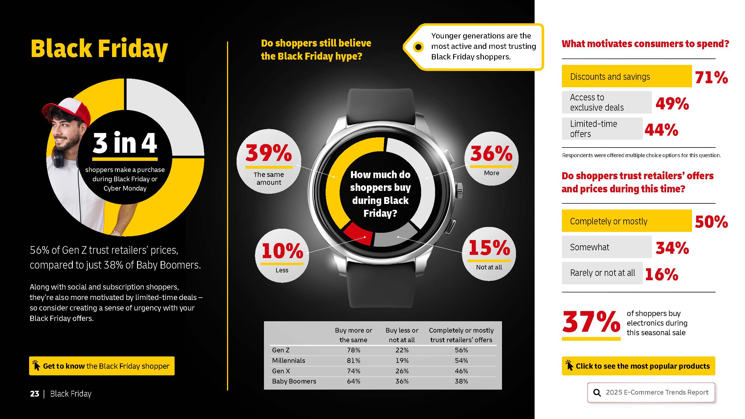 For 2025, we shifted from multiple reports to one comprehensive publication. Our approach was built on an enhanced structure, designed around key topics that would resonate most with DHL’s audiences – from generational shopping behaviours and comparative trends to detailed shopper profiles. The goal: to provide actionable insights in a clear, easy-to-use format.
